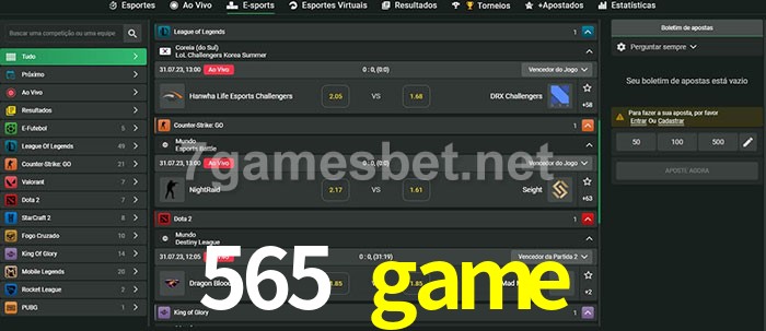 O 565 game oferece uma grande seleção de opções de apostas em e-sports com probabilidades competitivas